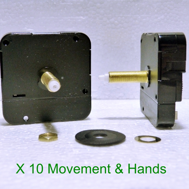 10x Quartz DIY ticking clock movement, Extra Long 31mm shaft mechanism and hands